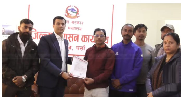 पर्सा जिल्ला कार्य समितिका अध्यक्ष बिकाश साहको नेतृत्वमा गएको टोलीले प्रमुख जिल्ला अधिकारी भोला दाहाललाई ज्ञापनपत्र बुझाएको हो ।
