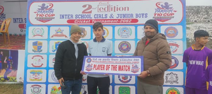 वीरगंज, ६ पुस । निजी तथा आवासीय विद्यालय सङ्गठन (प्याब्सन) वीरगंजको आयोजनामा जारी दोस्रो संस्करणको अन्तर विद्यालय टी–१० क्रिकेट प्रतियोगितामा आइतबार पाँचौँ दिन पाँच वटा रोमाञ्चक खेलहरू सफलतापूर्वक सम्पन्न भएका छन् । आदर्शनगर रङ्गशालामा सम्पन्न खेलहरूमा केटा तथा केटी दुवै तर्फका विद्यालय टोलीहरूले दमदार प्रदर्शन गर्दै दर्शकहरूको उत्साह बढाएका थिए ।