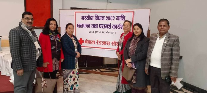 वीरगंज, १० पुस । वीरगंज नेपाल रेडक्रस सोसाइटी मधेस प्रदेशका आठवटै जिल्लाका सहभागितामा वीरगंजमा मस्यौदा विधान २०८२ सम्बन्धी छलफल तथा परामर्श कार्यशाला सम्पन्न भएको छ । यस कार्यशालाको उद्घाटन नेपाल रेडक्रस सोसाइटीका केन्द्रीय अध्यक्षको प्रमुख आतिथ्यमा भएको थियो ।