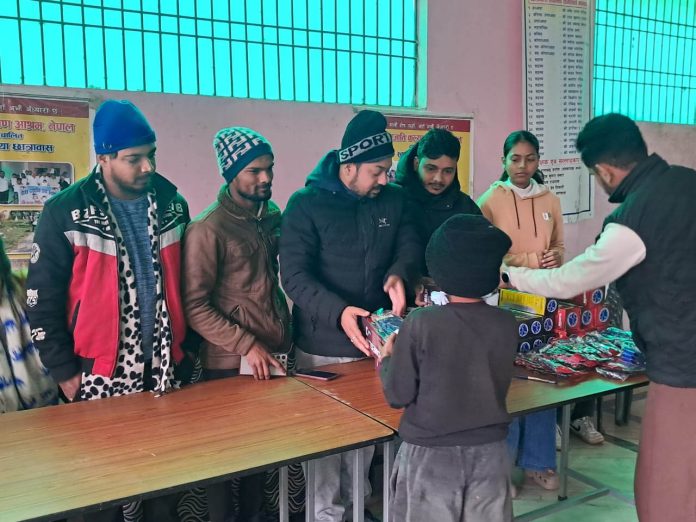 वीरगंज, १६ पुष । आमाको माया छात्रावासमा थर्मस, मोजा र पञ्जा वितरण कार्यक्रम आयोजक आलोक यादवका अनुसार रोट्र्याक्ट क्लब अफ वीरगंज महानगर र डिएभी स्कूलको इन्टरएक्ट क्लबको संयुक्त आयोजनामा आमाको माया छात्रावासमा न्यानो सामग्री वितरण कार्यक्रम सम्पन्न भएको छ । उक्त कार्यक्रममा २६ थान थर्मस, मोजा तथा पञ्जा वितरण गरिएको थियो । कार्यक्रमको प्रायोजन प्रकाश कर्णले गर्नुभएको थियो ।