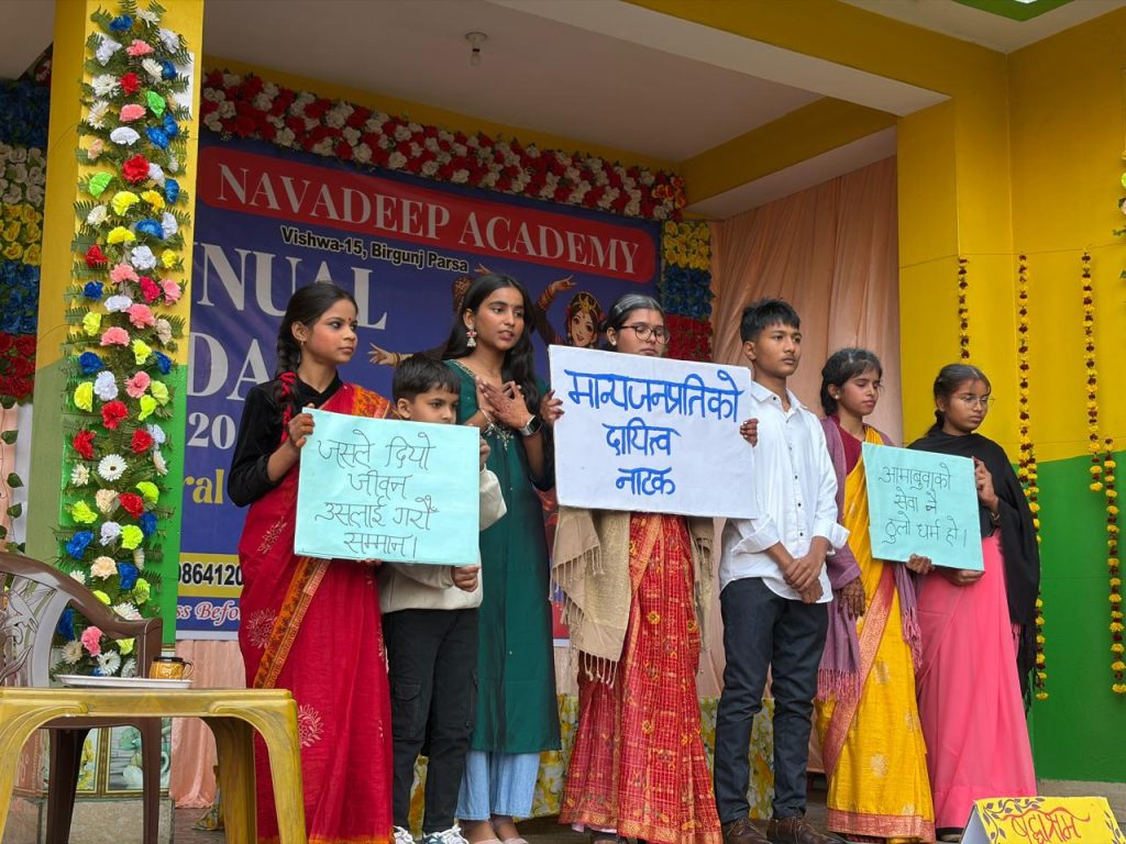 वीरगंज, ३ माघ । नवदीप एकेडेमीको १३ औैं वार्षिकोत्सव शनिवार सम्पन्न भएको छ। वीरगंज महानगरपालिका–१५ स्थित विद्यालय परिसरमा सांस्कृतिक तथा खेलकुद कार्यक्रमको आयोजना गरी वार्षिकोत्सव मनाइएको हो ।