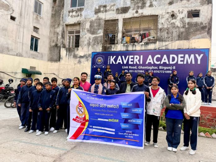 वीरगंज, ०६ माघ । वीरगंजस्थित कावेरी एकेडेमीमा ट्राफिक सचेतना कार्यक्रम सफलतापूर्वक सम्पन्न भएको छ। कार्यक्रम जिल्ला ट्राफिक प्रहरी कार्यालय पर्साका प्रहरी प्रमुख प्रहरी निरीक्षक युवराज कटवालको प्रमुख आतिथ्यमा सञ्चालन गरिएको थियो ।
