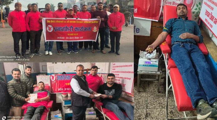 प्रेस सेन्टर नेपालको २२ औँ स्थापना दिवसको अवसरमा  वीरगंजमा प्रभात र्‍याली तथा रक्तदान कार्यक्रम सम्पन्न
