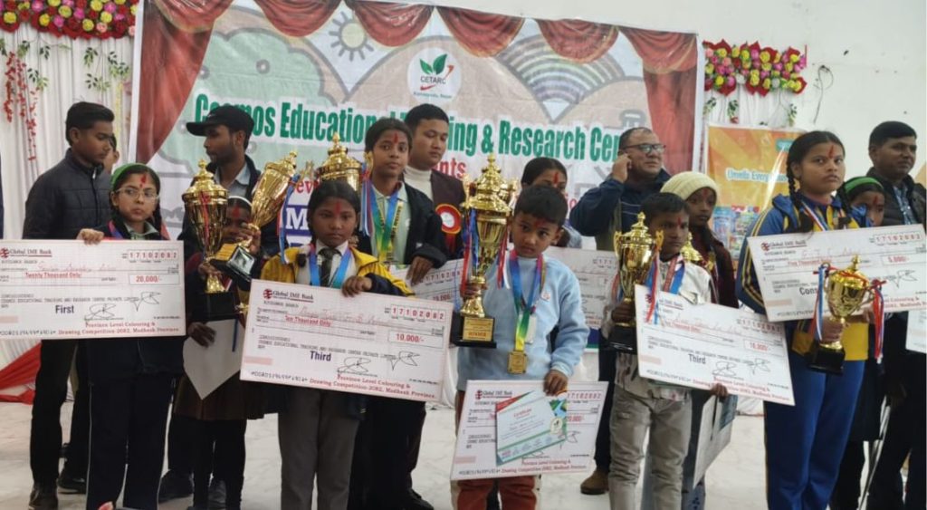 वीरगंज, २० माघ । Cosmos Educational Training and Research Centre, काठमाडौंको आयोजनामा सम्पन्न “Province Level Colouring and Drawing Competition–2082” मधेश प्रदेशमा पहिलो पटक सफलतापूर्वक सम्पन्न भएको छ। प्रतियोगिताको अन्तिम चरण रौतहट जिल्लाको चापुरमा आयोजना गरिएको थियो।