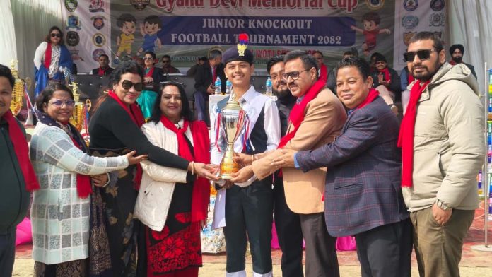 वीरगंज, २१ माघ । ज्ञानुदेवी मेमोरियल जुनियर फुटबल प्रतियोगिता आजदेखि आदर्शनगर रंगशालामा शुरू भएको छ। जीवन ज्योति माध्यमिक विद्यालयका सञ्चालक एवं प्रिन्सिपल शिवजी गुप्ताको अध्यक्षता तथा वीरगंज महानगरपालिकाका नगरप्रमुख राजेशमान सिंहको प्रमुख आतिथ्यमा उदघाटन समारोह सम्पन्न भएको हो।