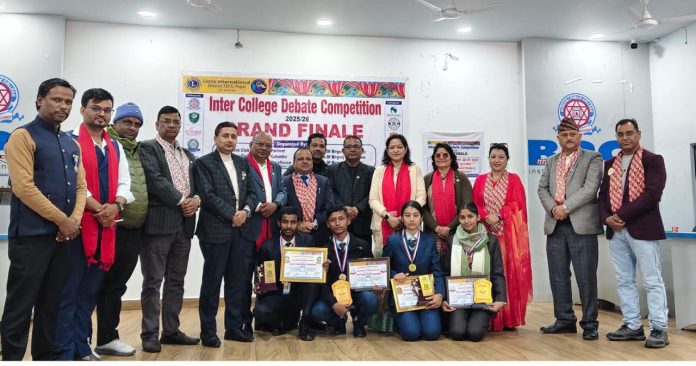 वीरगंज, २४ माघ । लायन्स क्लब अफ वीरगंज परिवारको अगुवाइमा विभिन्न लायन्स क्लबहरूको संयुक्त आयोजनामा सम्पन्न इन्टर कलेज वाद–विवाद प्रतियोगिताको फाइनल कार्यक्रम आज वीरगञ्जमा भव्य रूपमा सम्पन्न भएको छ। लायन्स क्लब अफ वीरगञ्ज परिवार, लायन्स क्लब वीरगंज सेन्ट्रल सिटी, लायन्स क्लब वीरगञ्ज मेट्रो सिटी, लायन्स क्लब वीरगञ्ज फ्रेन्डजोन, लायन्स क्लब वीरगंज कुटुम्ब तथा लायन्स क्लब वीरगंज एक्सिलेन्सको सहकार्यमा कार्यक्रम आयोजना गरिएको हो।