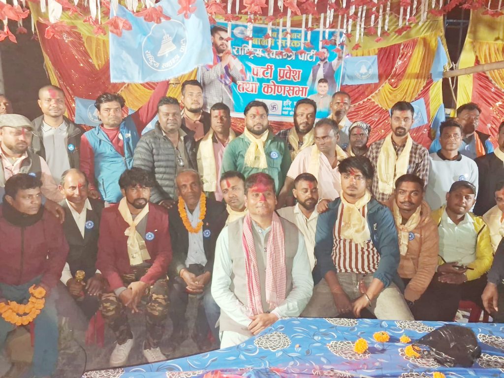वीरगंज, ०८ फागुन । पर्सा क्षेत्र नम्बर–१ अन्तर्गत सुखचैनामा आज आयोजित एक कार्यक्रमका बीच ठूलो समूह राष्ट्रिय स्वतन्त्र पार्टी (रास्वपा) मा प्रवेश गरेको छ। विभिन्न पेशा तथा व्यवसायमा आबद्ध व्यक्तिहरूले एकैसाथ पार्टीमा प्रवेश गर्दै क्षेत्रीय राजनीतिमा नयाँ उत्साह थपेका छन्।