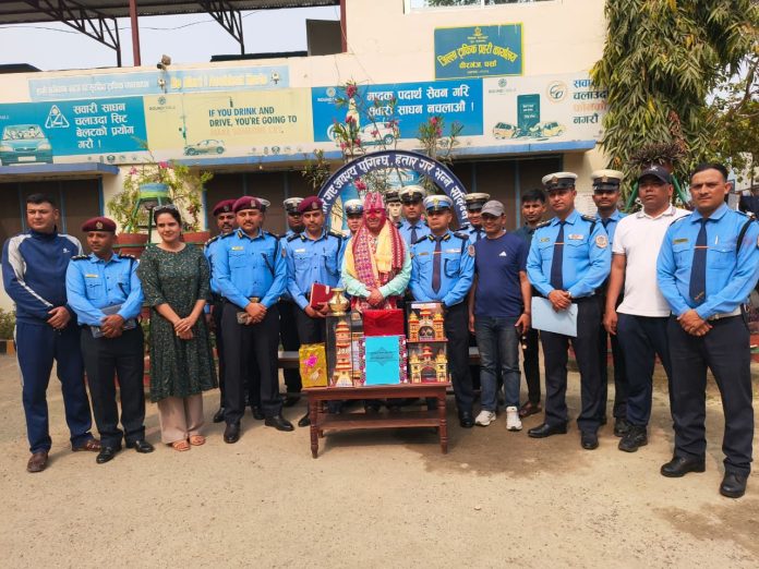 वीरगंज, २६ फागुन । जिल्ला ट्राफिक प्रहरी कार्यालय पर्सामा कार्यरत प्रहरी वरिष्ठ नायब निरीक्षक गुणनिधि खकुरेलको बिदाई कार्यक्रम भव्य रूपमा सम्पन्न भएको छ। आज आयोजित एक विशेष कार्यक्रमका बीच जिल्ला ट्राफिक प्रहरी कार्यालय पर्सामा उक्त बिदाई कार्यक्रम सम्पन्न गरिएको हो।