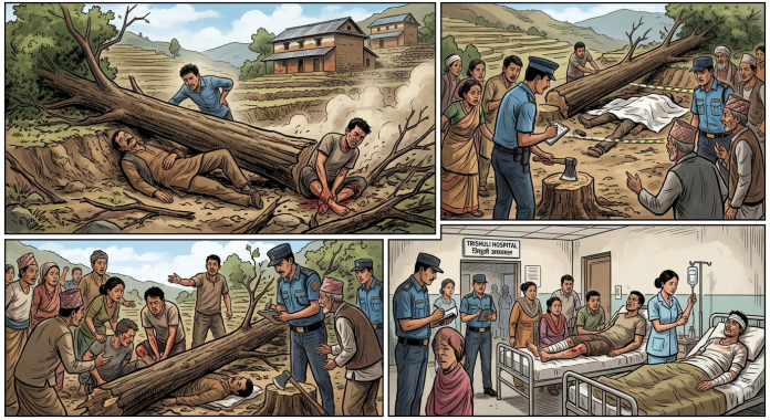 नुवाकोट, २८ चैत : आज यहाँको बेलकोटगढी नगरपालिका–९ नलगाउँमा रुख काट्ने क्रममा एक जनाको मृत्यु भएको छ । आफैँले काटेको रुखले लागेर सोही स्थानका ३५ वर्षीय प्रेम तामाङको घटनास्थलमै मृत्यु भएको जिल्ला प्रहरी कार्यालयका प्रहरी नायब उपरीक्षक विक्रम लामाले जानकारी दिनुभयो ।