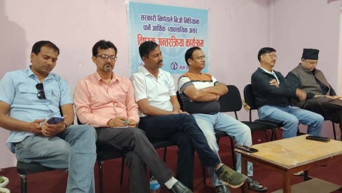 नेपाल प्रेस युनियन पर्सा शाखा ले सोमवार वीरगंजमा आयोजना गरेको “सरकारी निर्णयले निजी मिडियामा पार्ने आर्थिक तथा व्यवसायिक असर” विषयक अन्तरक्रिया कार्यक्रममा बोल्दै महासंघका सचिव अशोक तिवारी ले सरकारको निर्णयप्रति असन्तुष्टि जनाउँदै आन्दोलनको तयारी भइरहेको जानकारी दिनुभयो।