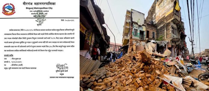 वीरगंज, ११ वैशाख । वीरगंज महानगरपालिकाले मुख्य सडक विस्तारका क्रममा पूर्ण रूपमा भूमीहिन बनेका घरजग्गा धनीहरूलाई राहत उपलब्ध गराउने उद्देश्यले आवश्यक पहल थालेको छ।