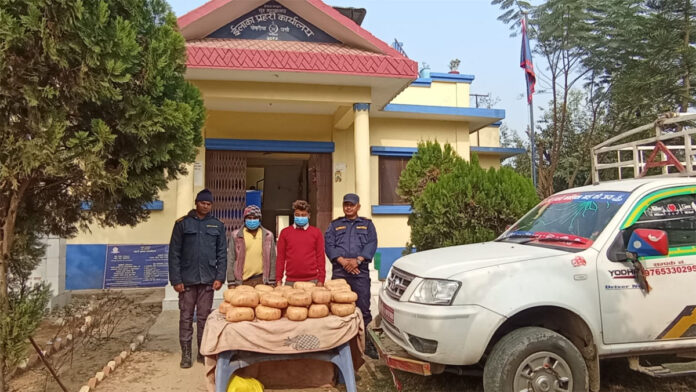 इलाका प्रहरी कार्यालय पोखरिया र प्रहरी चौकी महुवनको टोलीले प्लाष्टिकमा टेपले बेरिएको ४२ पोका (४२ किलो) गाँजासहित चालक जिल्ला मकवानपुर भिमफेदी गा.पा.वडा नं.९ स्यारसे बस्ने वर्ष ३४ को सुमन ब्लोन र पटेर्वासुगौली गा.पा. वडा नं. ४ बस्ने वर्ष ४० को बिनोद रामलाई पक्राउ गरी लागु औषध सम्बन्धी कसूरमा थप अनुसन्धान भइरहेको जिप्रका, पर्साले जनाएको छ ।