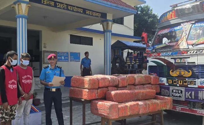 विशेष सूचनाको आधारमा पालुङबाट वीरगञ्चतर्पm जाँदै गरेको ना ७ ख १७७१ को ट्याकंर जाँच गर्ने क्रममा मकवानपुरको मनहरी–९ ज्यामिरेका ट्यांकरचालक २६ वर्षीय रोशन पुरी र सहचालक २२ वर्षका धनबहादुर मल्ललाई गाँजासहित प्रहरीले पक्राउ गरेको हो।