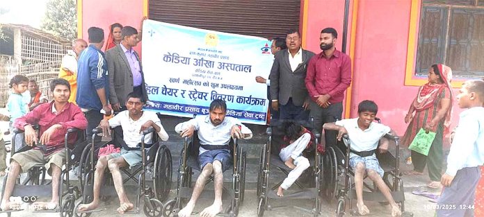 वीरगंज, २६ फागुन । केडिया आँखा अस्पताल परवानीपुरले ५०औ वार्षिकोत्सवको अवसरमा बारा जिल्लाको विभिन्न पालिकामा रहेका १४ जना अपाङ्ग व्यक्तिहरूलाई १४ वटा हिवलचेयर र एक थान स्ट्रेचर घरमा पुगेर प्रदान गरेको छ ।