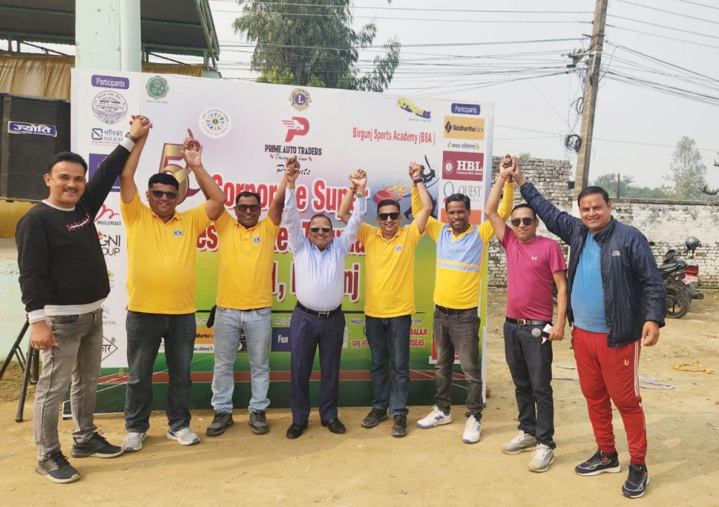 वीरगंज, ३० कार्तिक । वीरगंज स्पोर्ट्स एकेडमी (BSA) र लायन्स क्लब अफ वीरगंज परिवारको संयुक्त आयोजनामा बीरगंजमा ६औं कर्पोरेट सुपर सिक्स क्रिकेट प्रतियोगिता आयोजना गर्न लागिएको छ। पाँच ओभरको खेलमा छ–छ खेलाडी सहभागी हुने लिग तथा नकआउट मिश्रित प्रारूपमा प्रतियोगिता सञ्चालन हुने आयोजकले जानकारी दिएका छन्।