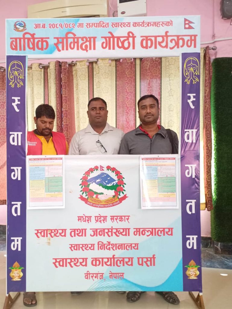 वीरगंज, ३० कार्तिक । स्वास्थ्य कार्यालय पर्साद्वारा आयोजित दुई दिने वार्षिक समीक्षा गोष्ठीको पहिलो दिन आइतबार वीरगंजस्थित क्लासिक ब्यान्क्वेट होटलमा भव्य रूपमा सम्पन्न भएको छ। आर्थिक वर्ष २०८२-८३ का स्वास्थ्य कार्यक्रमहरूको प्रगति, चुनौती तथा आगामी सुधारका उपायबारे विस्तृत समीक्षा गर्ने उद्देश्यले गोष्ठी सञ्चालन गरिएको हो।