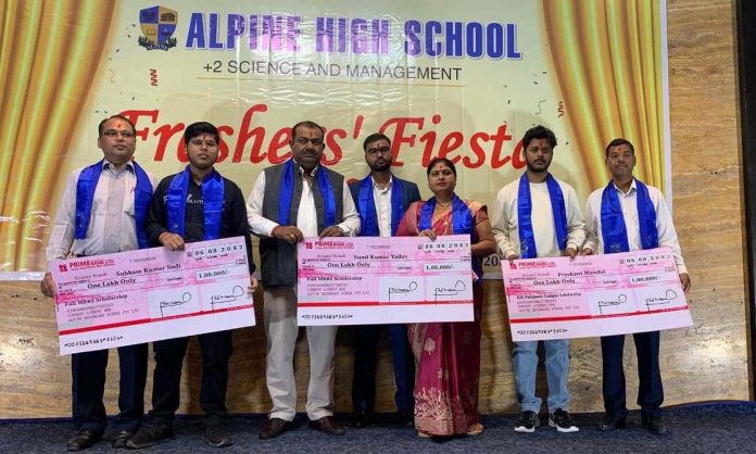 अल्पाइन हाइ स्कूल प्लस टु साइन्स म्यानेजमेन्टबाट अध्ययन गरी एमबिबिएस अध्ययनका लागि पूर्ण छात्रवृत्ति प्राप्त गरेका सुनील कुमार यादव, शुभमकुमार सुडी र आइओई पुल्चोक इन्जिनियरिङ छात्रवृत्ति प्राप्त गरेका प्रशान्त मण्डललाई अल्पाइनका अध्यक्ष विनोद उपाध्याय, निर्देशक विशाल उपाध्याय र प्रधानाध्यापक विक्रम उपाध्यायले संयुक्तरूपमा रू एक–एक लाखको चेक हस्तान्तरण गरेका थिए ।