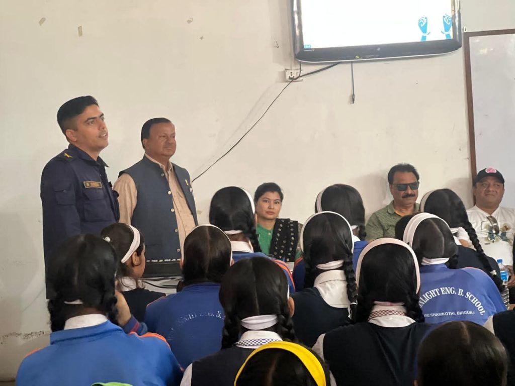 कार्यक्रमका प्रमुख अतिथि तथा प्रशिक्षक प्रहरी निरीक्षक बिक्रम सुवेदीले कक्षा ९ का विद्यार्थीहरूलाई दाइजो प्रथाले निम्त्याउने आर्थिक, सामाजिक र मनोवैज्ञानिक असरबारे विस्तृत जानकारी गराउँदै दाइजो लिन–दिनु दुवै कार्य कानुनी रूपमा दण्डनीय रहेको बताउँदै सचेत गराए। बालविवाहले युवतीहरूमा गम्भीर स्वास्थ्य समस्या, शिक्षा छाड्ने अवस्था र घरेलु हिंसा बढ्ने जोखिम उच्च हुने उल्लेख गर्दै उनले बालविवाह रोकथामका लागि विद्यार्थी स्वयंले पनि सक्रिय भूमिका निभाउनुपर्नेमा जोर दिए । निरीक्षक सुवेदीले लैंगिक हिंसा रोकथाममा समुदाय–प्रहरी सहकार्य महत्वपूर्ण हुने उल्लेख गर्दै युवाहरू समाज परिवर्तनका मुख्य वाहक हुन्, भन्दै गलत संस्कारविरुद्ध जागरूकता फैलाउन आग्रह गरे ।