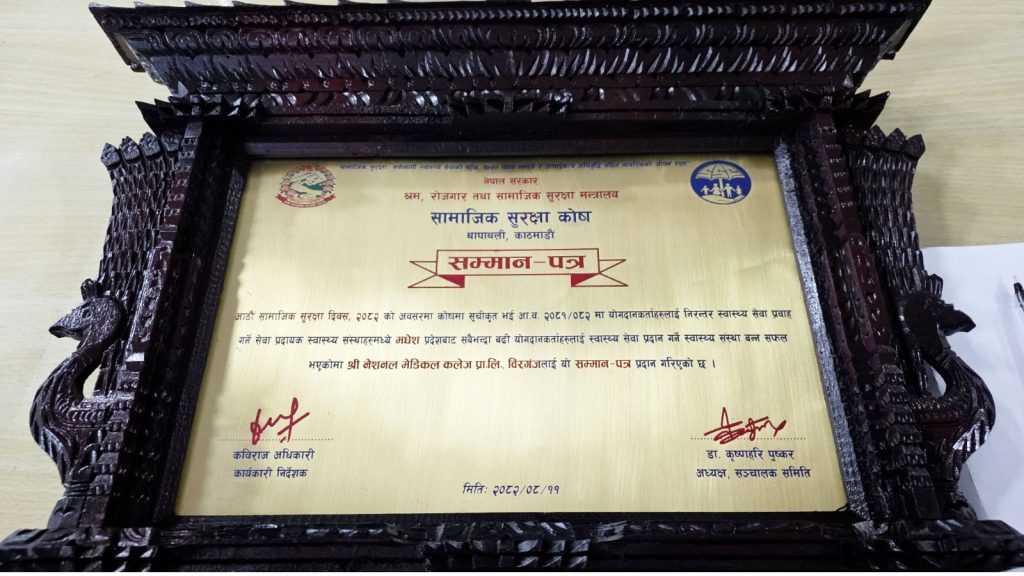 उनका अनुसार, सामाजिक सुरक्षा कोषद्वारा कलेजलाई लगातार दोस्रो पटक सम्मान प्रदान गरिएको हो। यसअघि आर्थिक वर्ष २०८०/८१ मा पनि मधेस प्रदेशमै उत्कृष्ट स्वास्थ्य सेवा प्रदान गरे बापत कलेज सम्मानित भएको थियो।