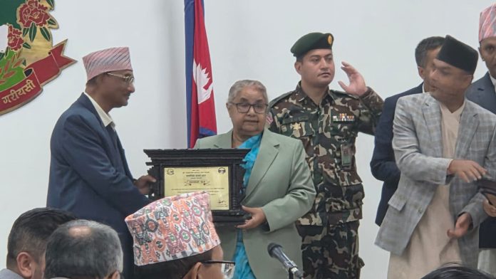 बिहीबार सिंहदरबारमा आयोजित ८ औं सामाजिक सुरक्षा दिवसका अवसरमा प्रधानमन्त्री सुशीला कार्कीले कलेजका अध्यक्ष प्रा.डा. जैनुद्दिन अन्सारीलाई सम्मानपत्र प्रदान गर्दै कलेजलाई सम्मानित गरेका हुन्।