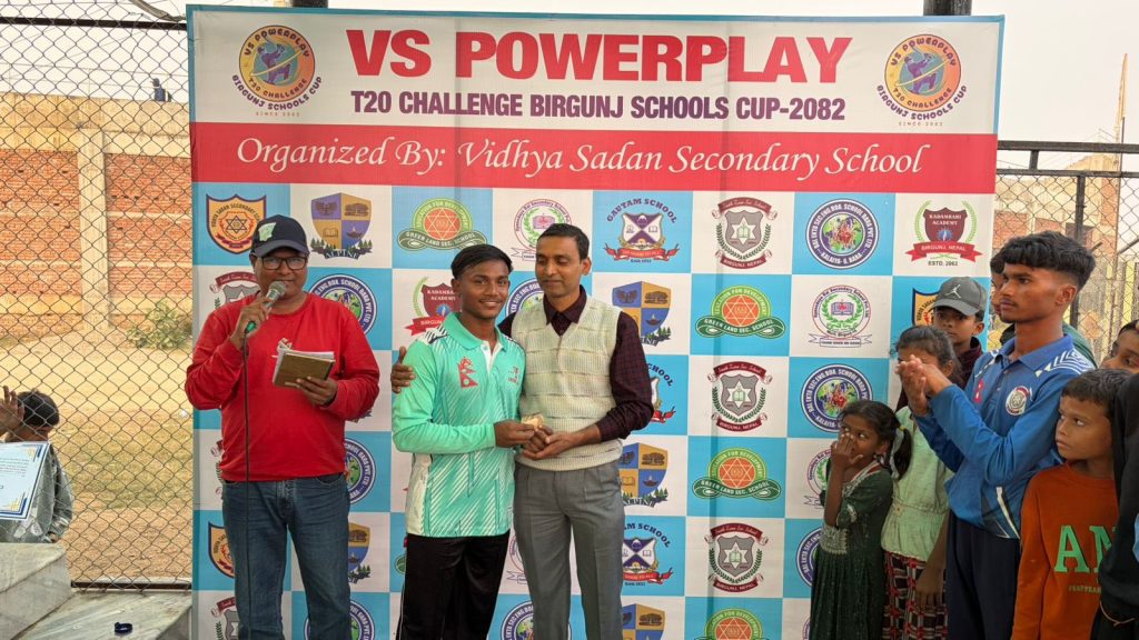 यस प्रतियोगिताको म्यान अफ द म्याच सोहेब शेख भए, उनले ३१ रन ३ विकेट लिएका थिए। अब उपाधिका लागि बाल एकता र ग्रीन ल्यान्ड सेकेन्डरी स्कूल भिड्नेछन । फाइनल खेलः बुधवार बिहान १० बजेदेखि स्थान नारायणी क्रिकेट ग्राउन्ड वीरगंजमा हुनेछ । विद्या साधन सेकेन्डरी स्कूलद्वारा आयोजना गरिएको भिएस पावरप्ले टि २० चैलेन्ज अन्तर्गत बुधवार फाइनल खेल हुनेछ ।