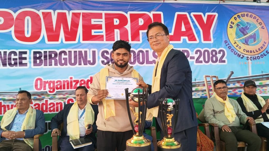 वीरगंज, १७ मंसिर । भीएस पावरप्ले टी–२० च्यालेन्ज वीरगन्ज स्कुल्स कप २०८२ अन्तर्गत आज सम्पन्न रोमाञ्चक फाइनल खेलमा ग्रीन ल्याण्ड सेकेन्डरी स्कुलले बाल एकता सेकेन्डरी इङ्ग्लिस बोर्डिङ स्कुललाई १ विकेटले पराजित गर्दै प्रतियोगिताको उपाधि हात पारेको छ।