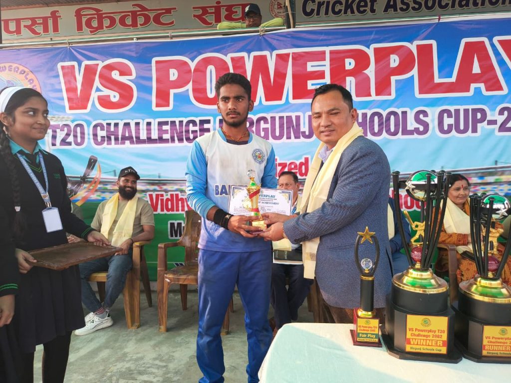 अन्य उत्कृष्टता पुरस्कार विजेताहरू श्रेष्ठ ब्याटर : रोहित शाह – बाल एकता सेकेन्डरी स्कुल (८९ रन),श्रेष्ठ बलर : सोहेब शेख – ग्रीन ल्याण्ड सेकेन्डरी स्कुल (१०.२ ओभरमा १० विकेट),टुर्नामेन्ट अफ द सिरिज : सोहेब शेख – ग्रीन ल्याण्ड सेकेन्डरी स्कुल (१० विकेट, ७३ रन),श्रेष्ठ विकेटकिपर : समीर हवारी – ग्रीन ल्याण्ड सेकेन्डरी स्कुल,श्रेष्ठ फिल्डर : आदित्य यादव – बाल एकता इङ्लिश बोर्डिङ स्कुल,उदीयमान खेलाडी : राहुल यादव – ३ खेलमा ८ विकेट (मात्र ११ वर्ष),श्रेष्ठ अल–राउन्डर : मिस्बाबुल अन्सारी – साउथ जोन सेकेन्डरी स्कुल (५० रन, ६ विकेट)यसैगरी फेयर–प्ले टिम अफ द टुर्नामेन्टको उपाधि साउथ जोन सेकेन्डरी स्कुलले प्राप्त गरेको छ।