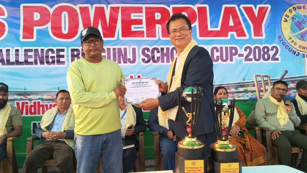 वीरगंज, १७ मंसिर । भीएस पावरप्ले टी–२० च्यालेन्ज वीरगन्ज स्कुल्स कप २०८२ अन्तर्गत आज सम्पन्न रोमाञ्चक फाइनल खेलमा ग्रीन ल्याण्ड सेकेन्डरी स्कुलले बाल एकता सेकेन्डरी इङ्ग्लिस बोर्डिङ स्कुललाई १ विकेटले पराजित गर्दै प्रतियोगिताको उपाधि हात पारेको छ।