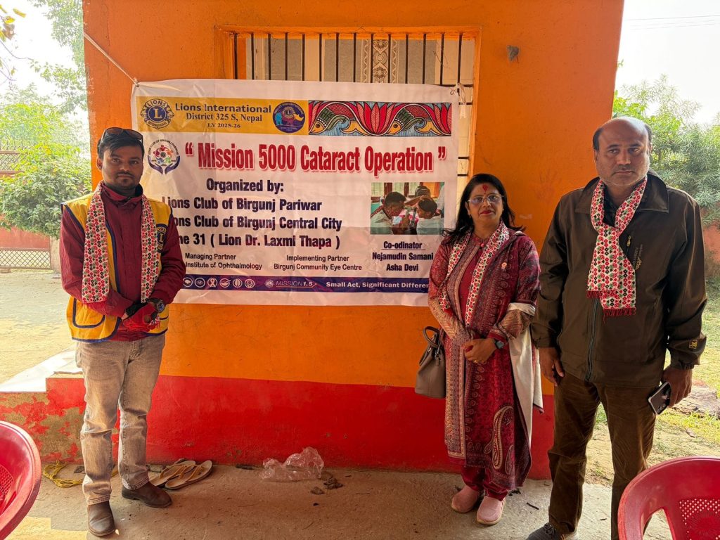 वीरगंज, २४ मंसिर । पोखरिया नगरपालिका–१ बनकटवा टोलमा लायन्स क्लब बीरगंज परिवार, लायन्स क्लब बीरगंज सेन्ट्रल सिटी तथा जोन चेयरपर्सन डा. लक्ष्मी थापाको सहयोगमा सञ्चालन गरिएको निःशुल्क आँखा जाँच तथा मोतियाबिन्दु परीक्षण शिविर सफलतापूर्वक सम्पन्न भएको छ।